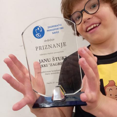 S basketbalovým oddílem jsem vyhrál několik cen a asi nejradši mám cenu pro nejlepšího mladého parasportovce roku 2023 v mé kategorii, kterou uděluje Záhřebská asociace parasportu.