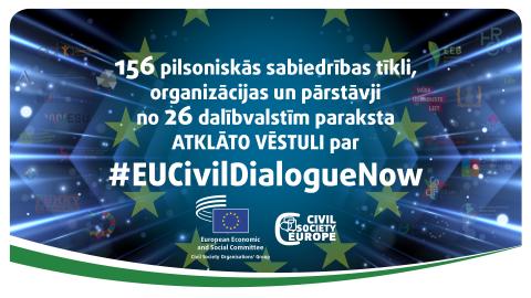 EESK Pilsoniskās sabiedrības organizāciju grupas un apvienības “Pilsoniskā sabiedrība – Eiropa” kopīga atklātā vēstule: Eiropas iestādēm strukturēta pilsoniskā dialoga ietvaros ir jāatzīst, jāiesaista un jāatbalsta pilsoniskā sabiedrība
